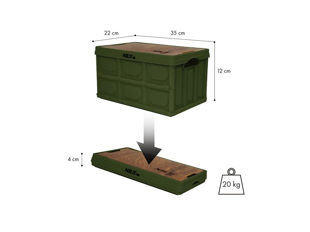 - Rozmery rozloženého boxu: 35 x 22 x 12 cm