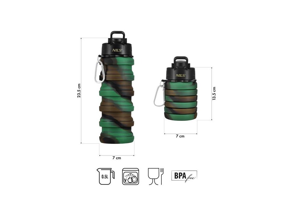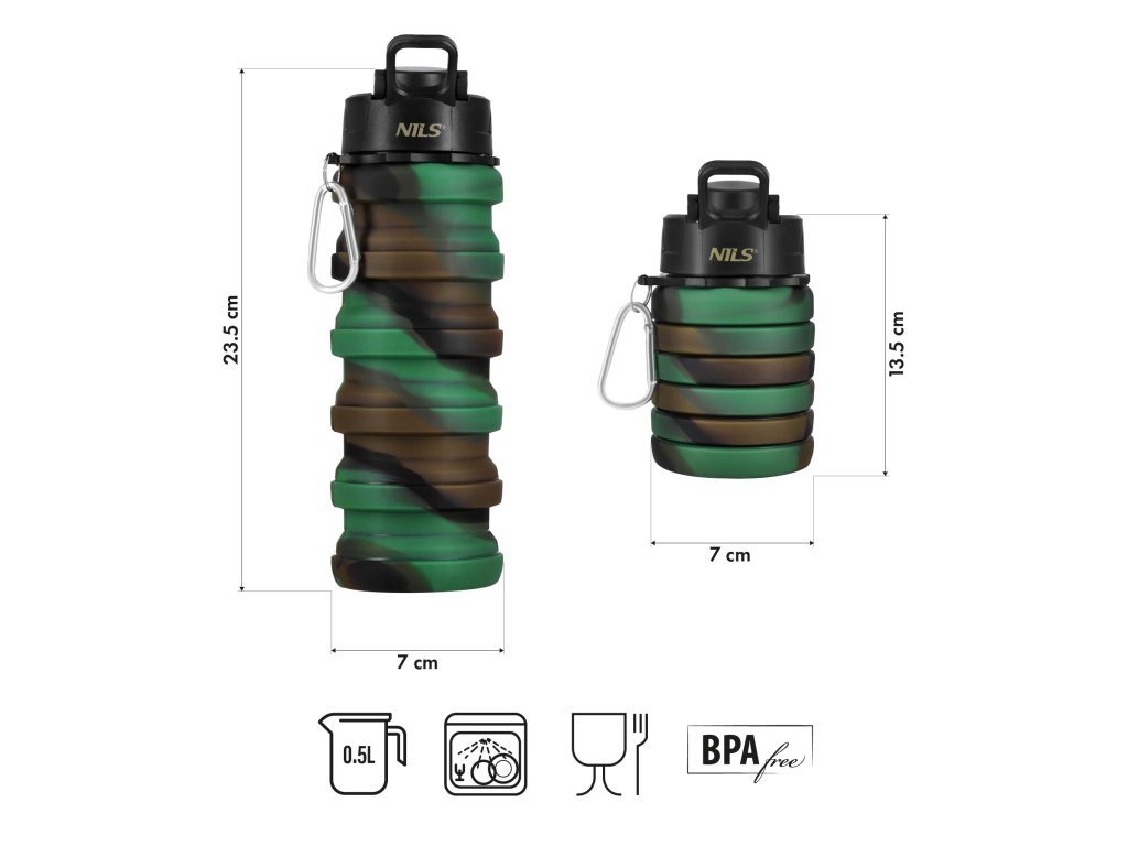 Skladacia silikónová fľaša NILS Camp NC4106 500 ml zelená