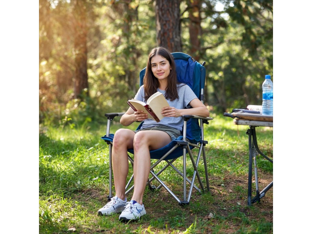 Po rozložení má kreslo rozmery 60 cm na šírku, 65 cm na dĺžku a 103 cm na výšku, čo zaručuje pohodlnú oporu pre celý chrbát a komfortné podmienky na sedenie. Vďaka širokej sedacej ploche (54,5 cm), vysokej opierke a širokým podrúčkam v ideálnej výške sa tento model osvedčí aj pre vyššie osoby alebo tých, ktorí hľadajú viac priestoru na odpočinok. Mäkké polstrovanie zaručuje pohodlie aj pri dlhom sedení.