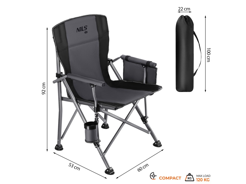 Skladacie rybárske kreslo NILS Camp NC3309 šedo-čierne