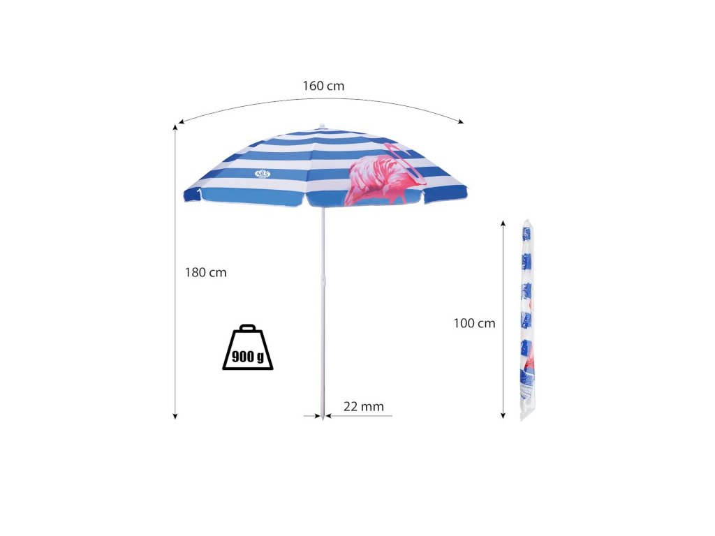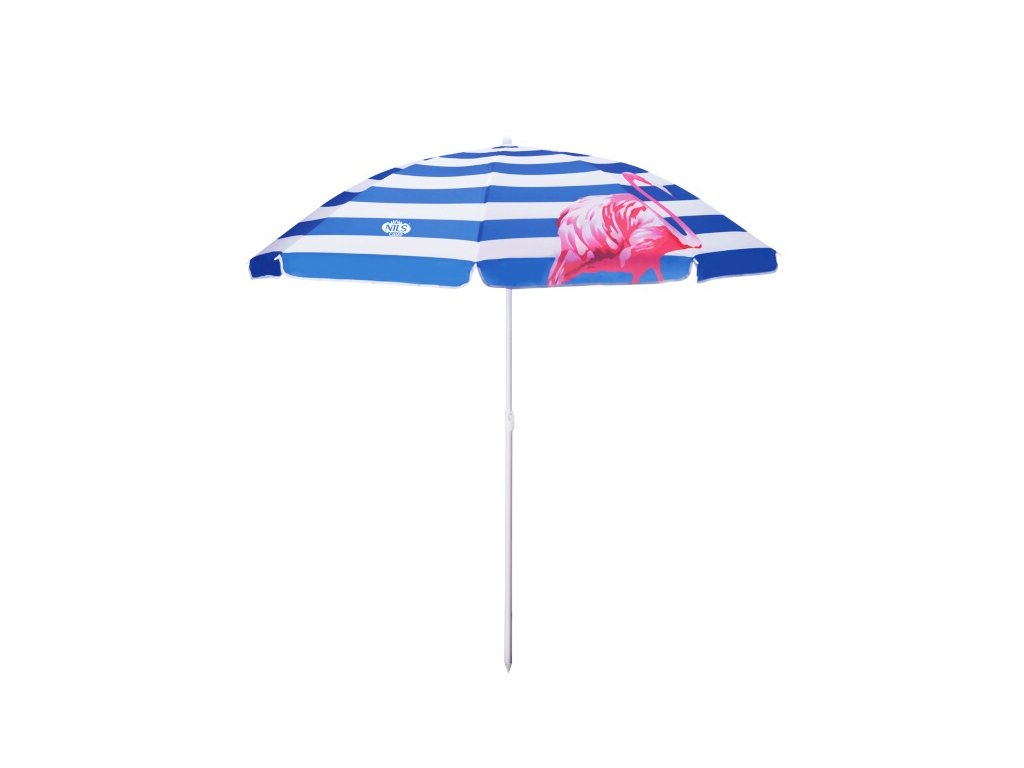 Plážový slnečník NILS Camp NC7811 je ideálnym partnerom na slnečné popoludnie na pláži alebo v záhrade. Dáždnik sa ľahko prenáša vďaka dodanej taške s ramenným popruhom. Spodná tyč je vybavená hrotom na jednoduché zapichnutie do zeme. Polyesterová tkanina má priemer 160 cm a dokonale chráni pred slnečným žiarením a škodlivým UV žiarením. Rám sa dá nakloniť.