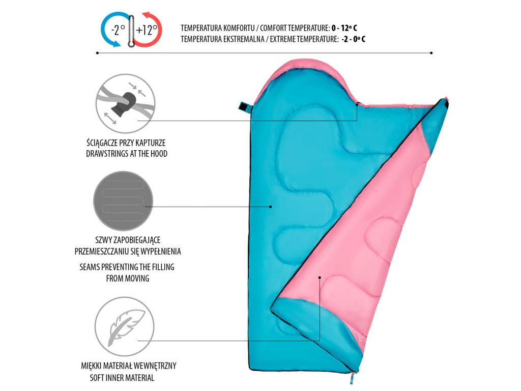 Spací vak NILS Camp NC2007 Junior je ideálnou voľbou pre všetkých mladých turistov, ktorí sa počas kempovania chcú vyspať pohodlne av teple. Tento model bol navrhnutý pre deti. Bude ideálny na výlety pod stan, tábory, prenocovanie v prírode alebo rodinné kempovanie.