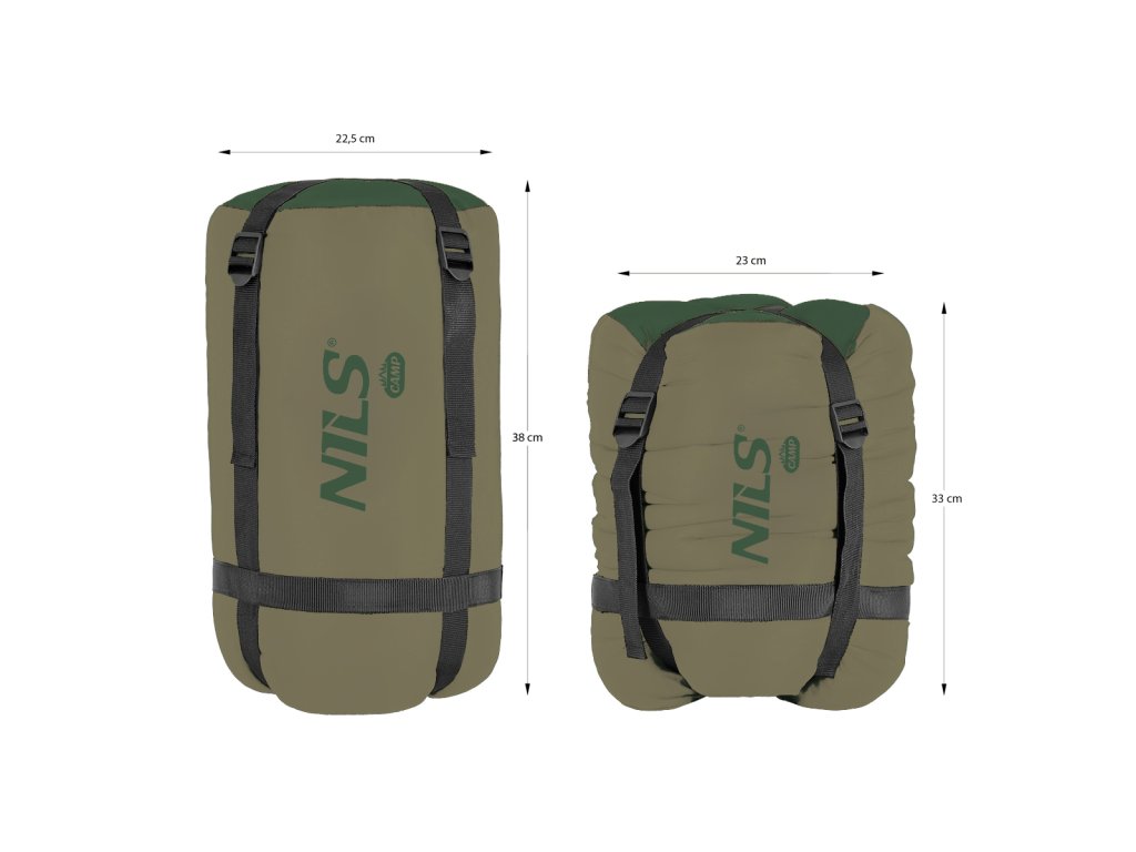 Spací vak sa dodáva v praktickom kompresnom obale s popruhmi, ktoré po vybratí ušetria približne 1/3 priestoru.