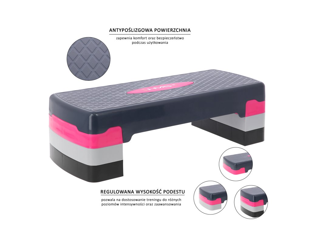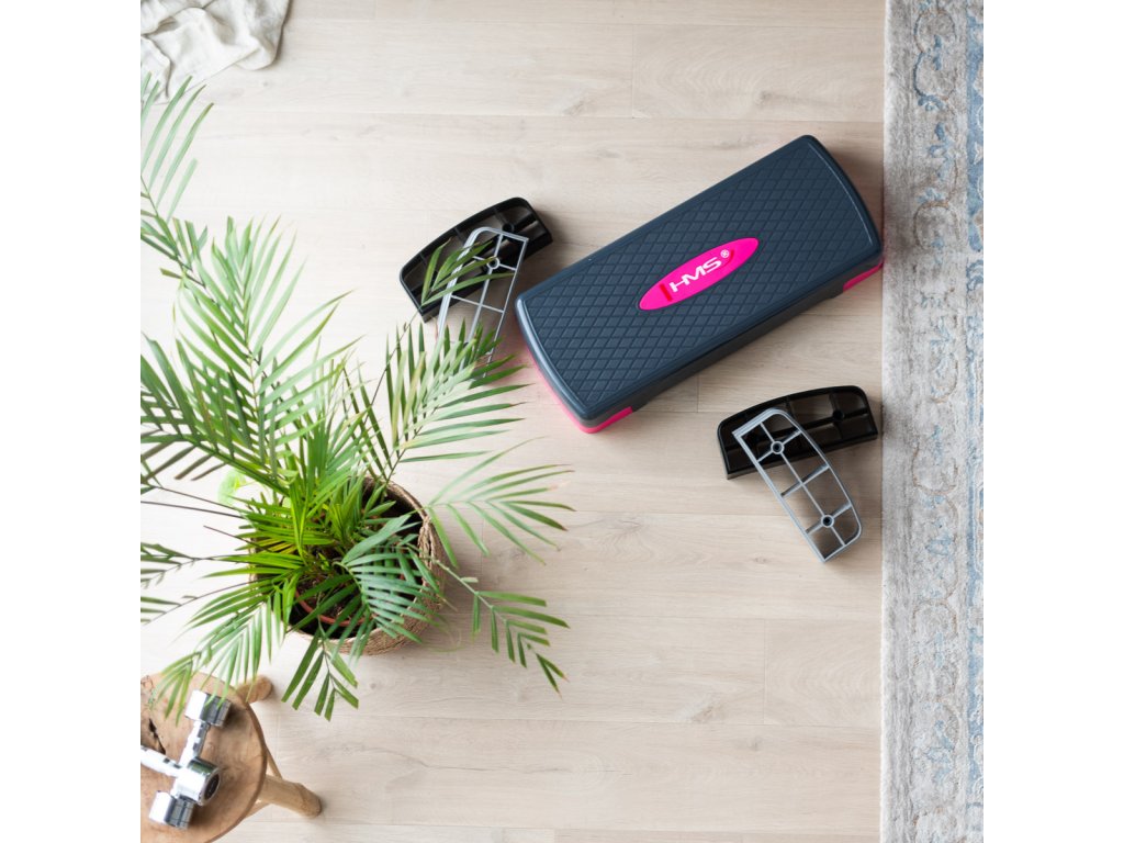 Vďaka trojstupňovému nastaveniu výšky si AS002 HMS dokonale prispôsobíte svojim predstavám, zručnostiam alebo konkrétnemu cvičeniu. Protišmykový povrch plošiny zaisťuje stabilitu a bezpečnosť pri tréningu. Gumové nožičky zase zabraňujú nechcenému posunu stepu.