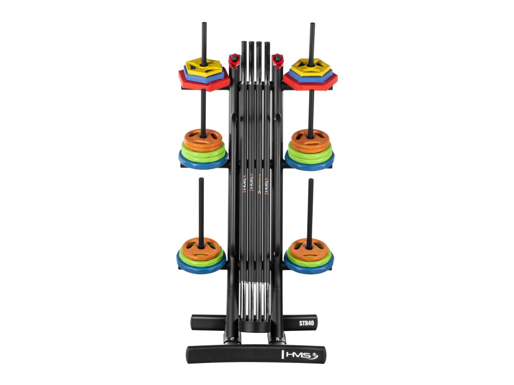 STR40 je funkčný tréningový stojan, ktorý pomáha s organizáciou priestoru uložením kotúčov, osí a príslušenstva pre tréning Body Pump. Vďaka maximálnej nosnosti 280 kg a premyslenej konštrukcii je ideálnou voľbou pre fitness centrá aj domáce posilňovne.