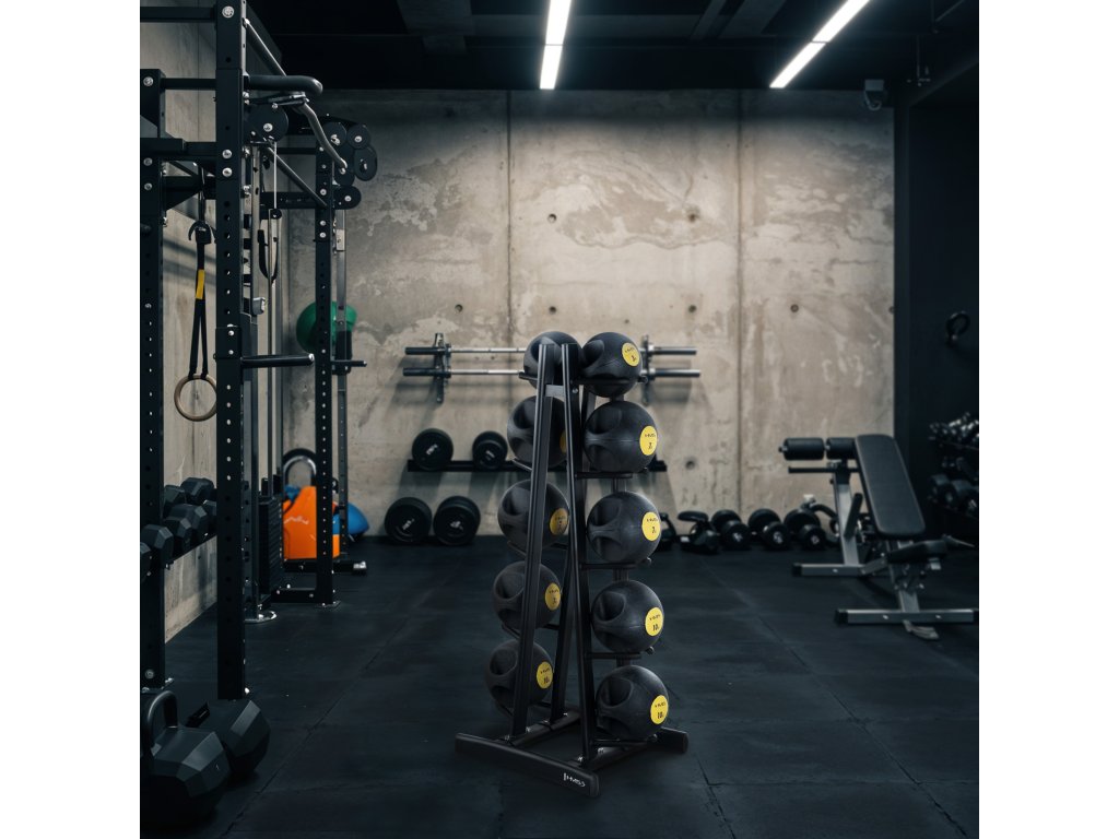 Stojan ponúka viac než len uloženie lôpt - múdra konštrukcia umožňuje využiť držiaky na uloženie ďalšieho príslušenstva, ako sú tréningové vaky, slam bally a iné vybavenie. Vďaka tomu je stojan STR41 univerzálnym riešením pre akýkoľvek fitness priestor.
