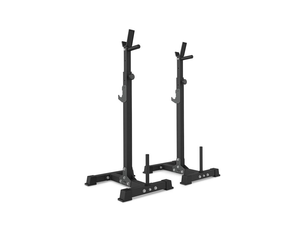 Veľké stojany na činky MARBO Sport MS-S108 so zarážkami vo verzii 2.0 sa vyrábajú na presných CNC strojoch z oceľových profilov s rozmermi 50 x 50 x 2 milimetre, pričom tento výrobný proces zaručuje vysokú presnosť a stabilitu konštrukcie a nosnosť 300 kilogramov. Výšku stojanov možno nastaviť v päťcentimetrových krokoch na 13 úrovní od 103 do 163 cm. Základňa s rozmermi 54 x 45 cm je ďalej stabilizovaná nepoužívanými závažiami, ktoré sú upevnené na úložných hrotoch s rozmermi 21 x 2,5 cm. Ak sú stojany MS-S108 2.0 dostatočne zaťažené, možno ich použiť aj ako stojany na tréning dipov (kliky na bradlách), na tento účel sú stojany vybavené rukoväťami s gumovými madlami. Pre maximálnu bezpečnosť počas silového tréningu sú kolíky na nastavenie výšky stojanov pripojené k veľkému háku, ktorý možno umiestniť v 3 úrovniach a slúži predovšetkým na zhodenie činky, ak už nemáte dostatok sily na jej vytiahnutie do stojana. Konce základne sú vyrobené zo špeciálnej gumovej zmesi, ktorá poskytuje ešte lepšiu stabilitu a ochranu podlahy ako predchádzajúca generácia regálov.