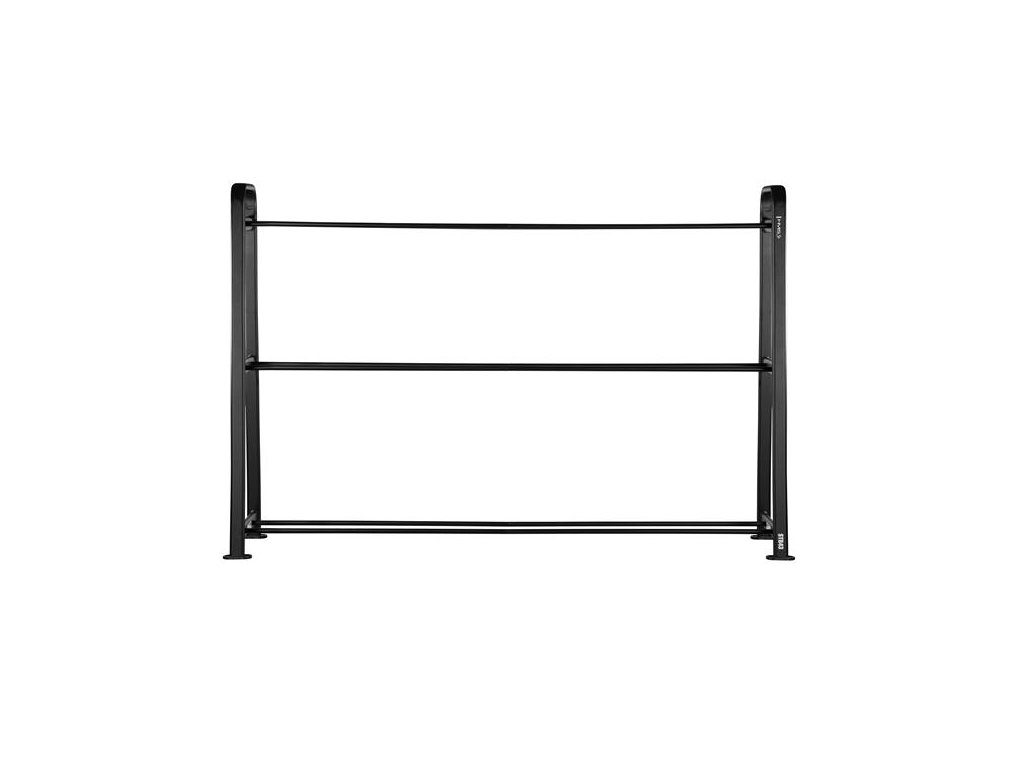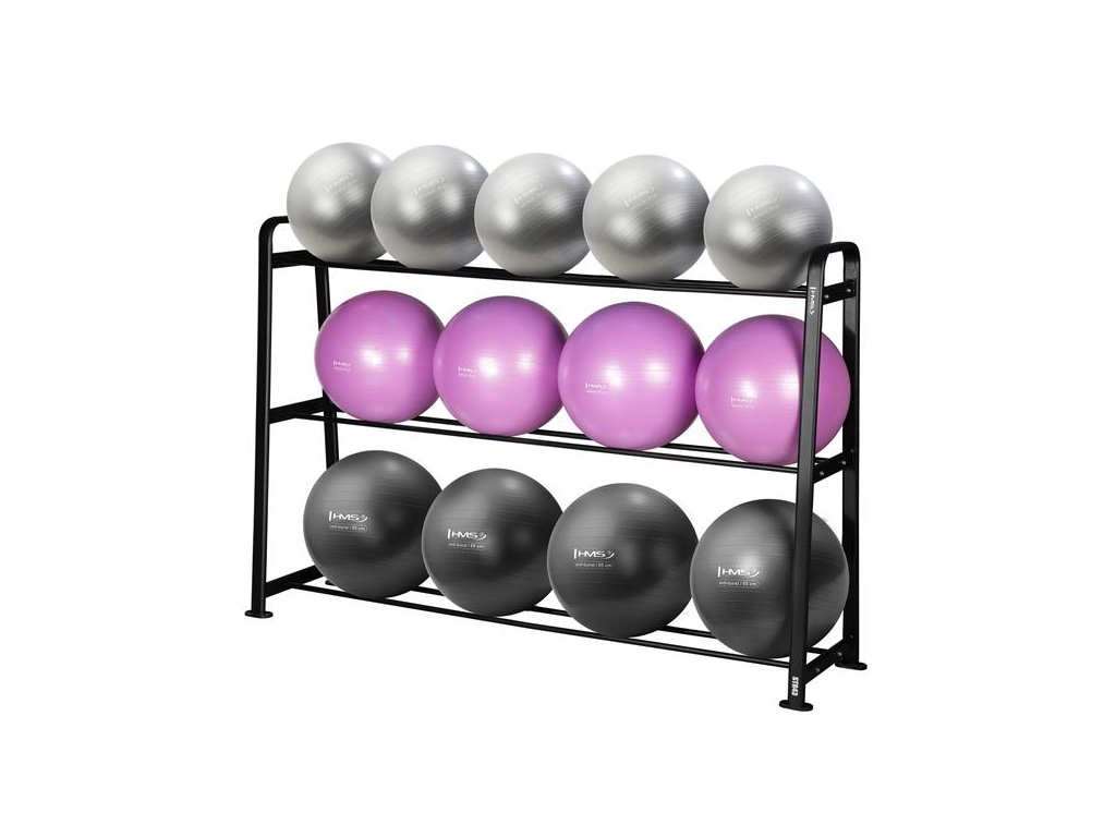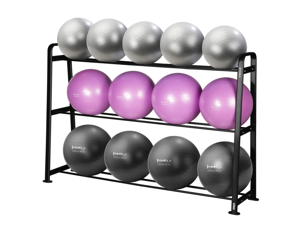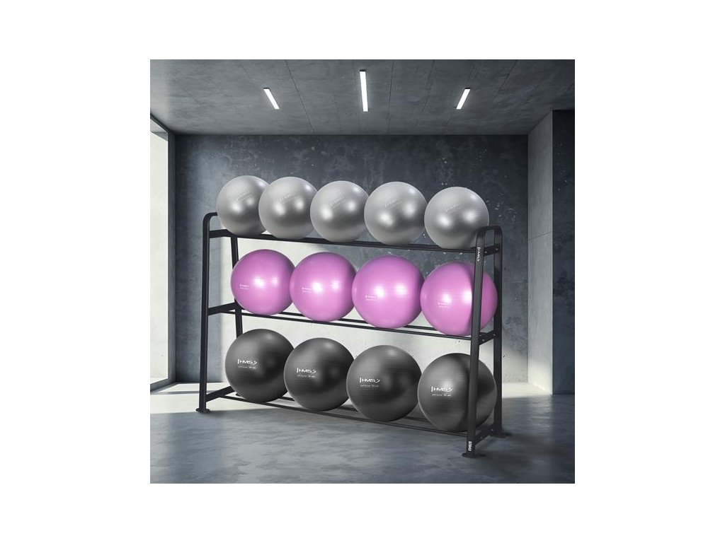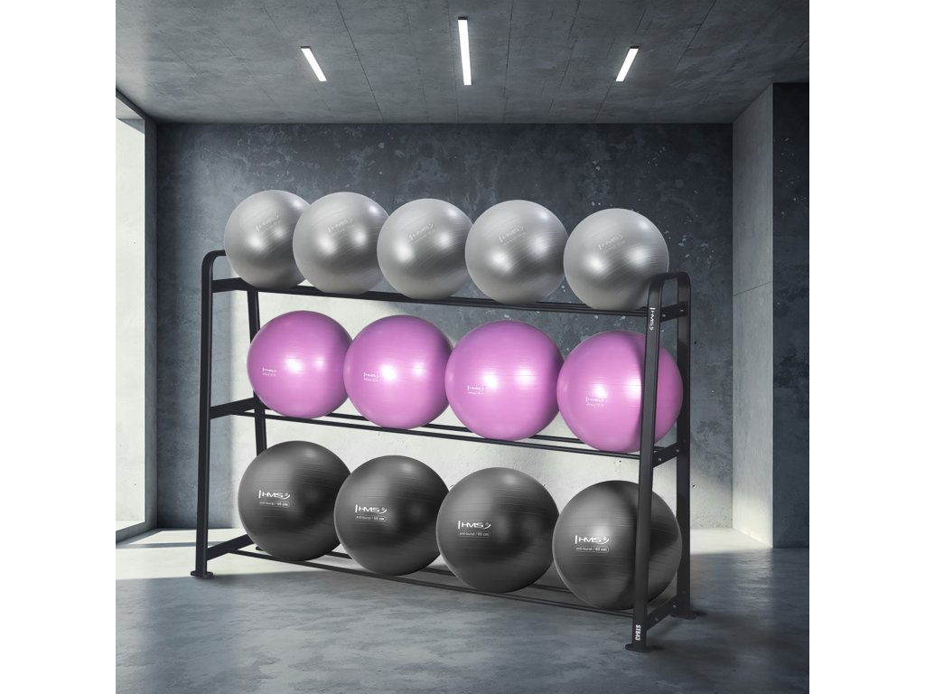 Stojan STR43 s tromi úrovňami uloženia umožňuje prehľadné rozdelenie lôpt podľa veľkosti a farby. Na spodnej polici sú uložené čierne lopty, uprostred fialovej a na hornej polici grafitovej, čo nielen uľahčuje prístup k vybaveniu, ale taktiež dodáva tréningovému priestoru moderný a profesionálny vzhľad.