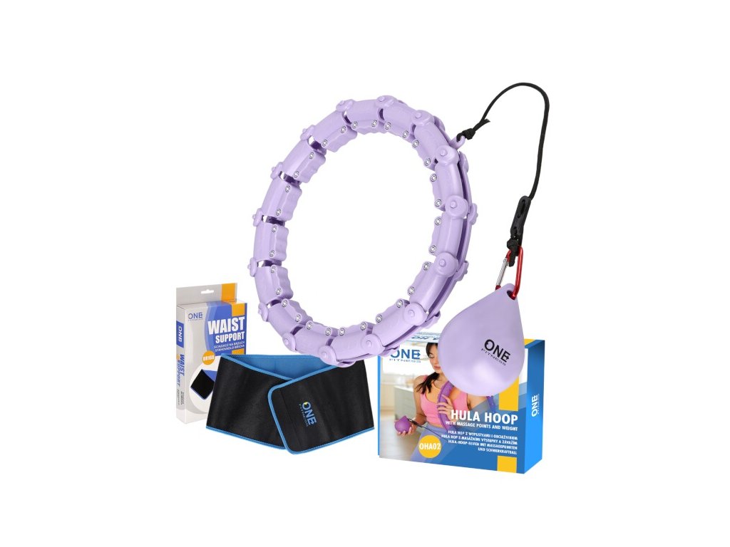 Súprava masážnej obruče ONE Fitness OHA02 so závažím a zoštíhľujúcého pásu BR160 fialová