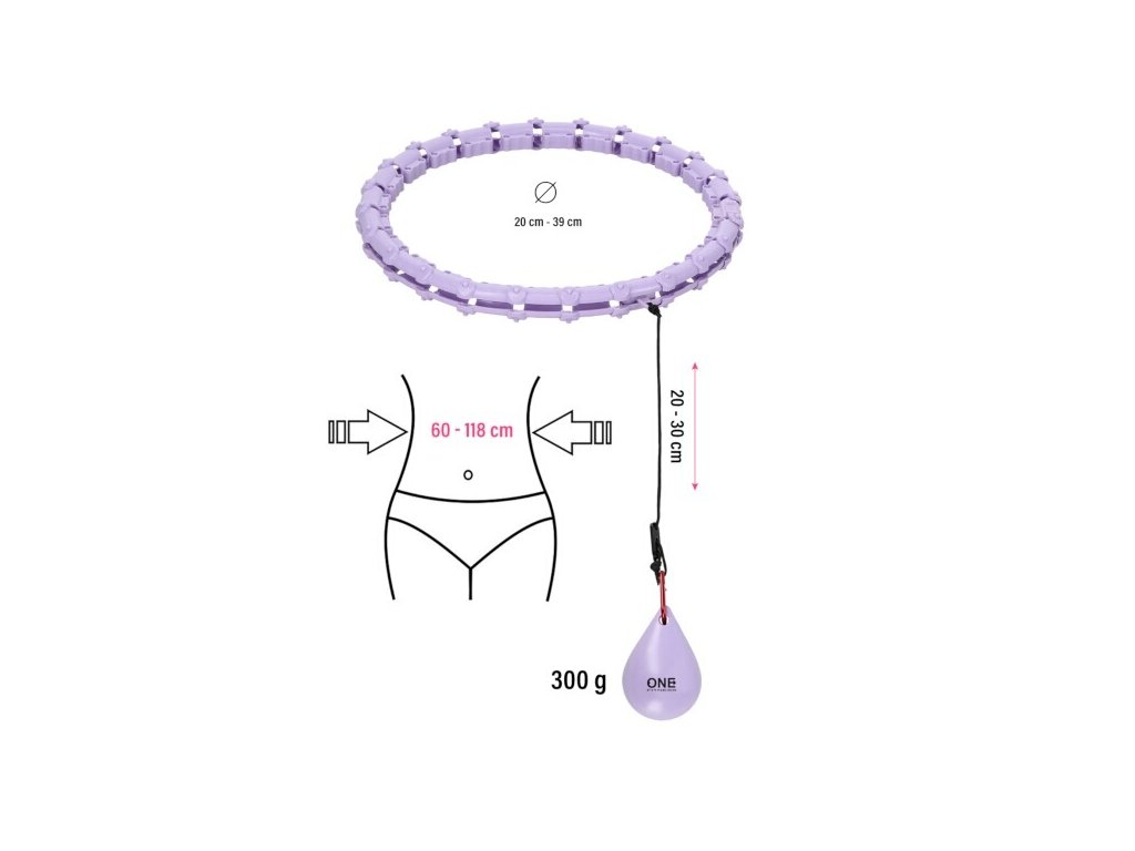 ONE Fitness OHA02 je obruč s nastaviteľnou dĺžkou, masážnymi platňami a rotujúcim závažím.