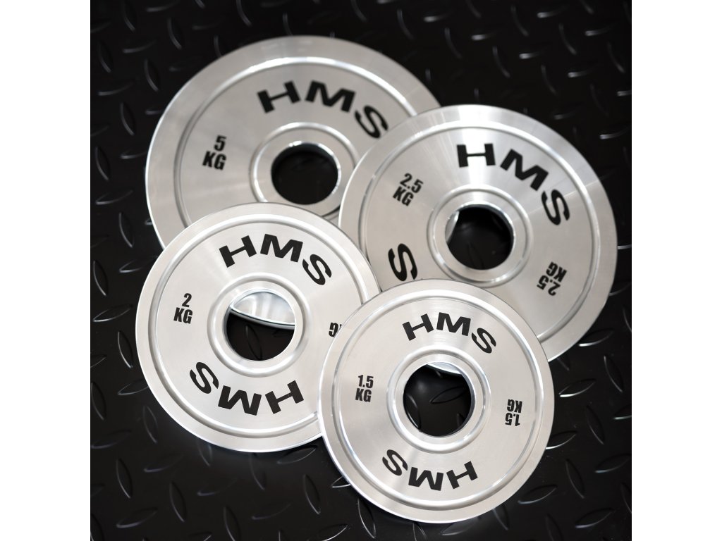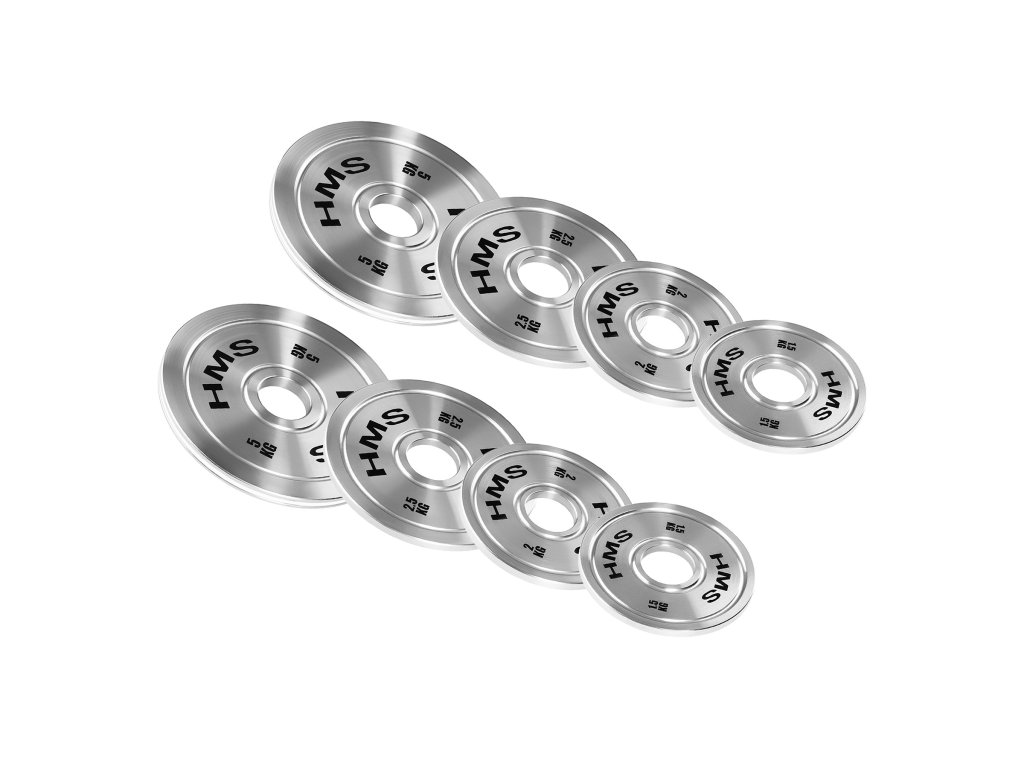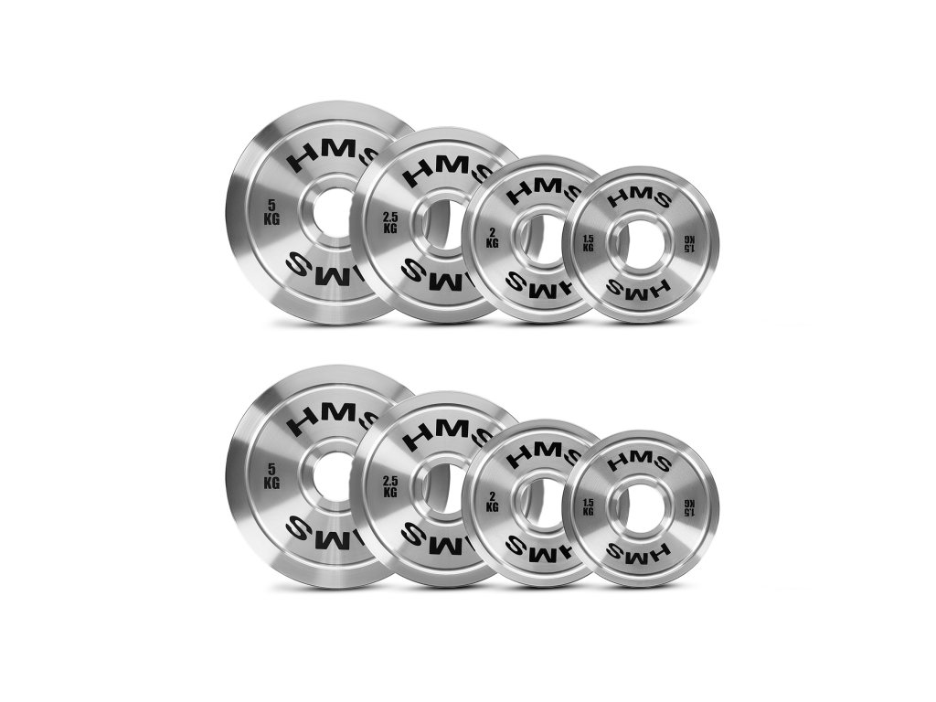 Súprava oceľových olympijských kotúčov HMS TOS 2 x 1,5 - 5,0 kg (22 kg)