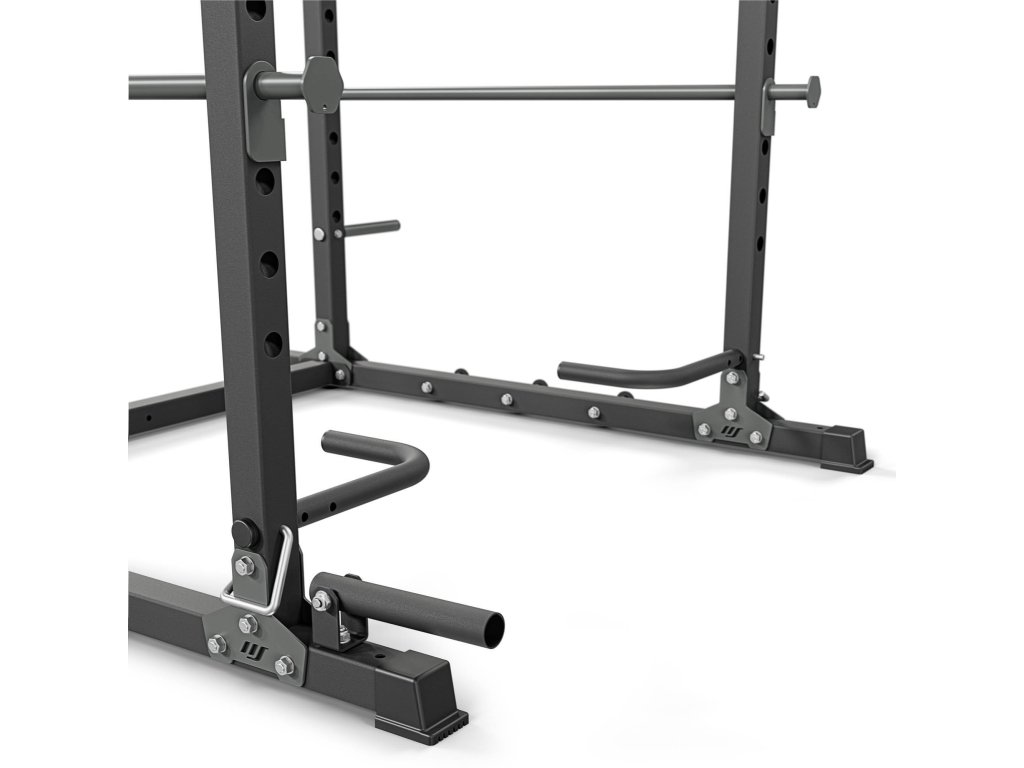 Súčasťou klietky sú bočné bezpečnostné tyče, ktoré slúžia ako poistka pri drepoch alebo bench presse. V prípade zlyhania série je možné činku bezpečne odložiť bez rizika zranenia.