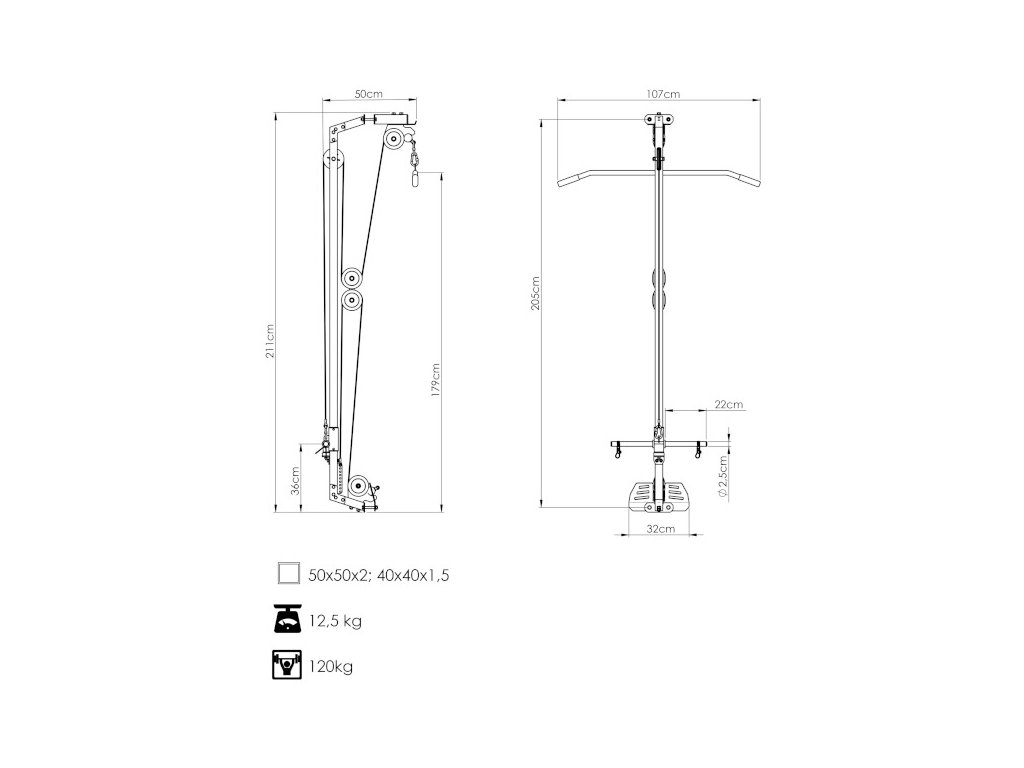 Horná a dolná kladka MS-W107 2.0 je profesionálne rozšírenie Power Racku MS-U112 2.0, ktoré z neho vytvára plnohodnotnú multifunkčnú posilňovaciu stanicu. Umožňuje cielený tréning chrbta, ramien, paží, brucha aj nôh s plynulým a prirodzeným chodom.