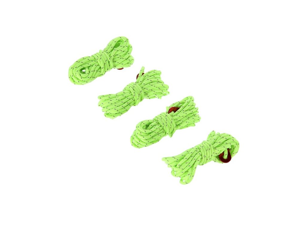 Sada obsahuje štyri šnúry s dĺžkou 415 cm a desať kolíkov, ktoré dohromady poskytujú všestrannosť a prispôsobivosť rôznym potrebám - od zvýšenia stability konštrukcie stanu po vytvorenie ďalších upevňovacích bodov v tábore.