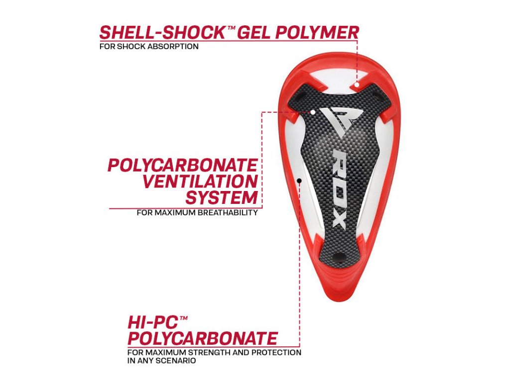 Chránič slabín je nevyhnutnou súčasťou ochranného vybavenia športovcov pri kontaktných športoch. Táto odolná a pevná výbava poskytuje mužom od bojových umení a zápasenia až po bejzbal a lakros základné krytie a ochranu mužských genitálií pred akýmikoľvek zraneniami spôsobenými nárazom. Nielenže chráni pred priamymi zraneniami, ale pomáha tiež znižovať bolestivé stavy, ako je napríklad inguinálna hernia. Gélový pohár na ochranu slabín RDX 1R bol navrhnutý s ohľadom na ergonómiu, vďaka čomu sa pohodlne zmestí do šortiek a umožňuje športovcom vykonávať útoky bez obáv z možných rizík alebo nepohodlia. Jeho vynikajúci dizajn a kvalita vyhotovenia z neho robia nepostrádateľný kúsok športového oblečenia pre športovcov, ktorí hľadajú najlepší spôsob, ako sa udržať v bezpečí. nárazuvzdorný HI-PCTM chráni pred nárazmi konštrukcia z polykarbonátového materiálu ľahký trojvrstvový kalíšok na slabiny pre vysokú odolnosť gélové línie PolygelTM pre maximálne pohodlie prémiový polykarbonátový ventilačný systém exkluzívny S.P.P™ pre maximálne prúdenie vzduchu materiál bez latexu pre pohodlné nosenie ergonomický dizajn pre jednoduché umiestnenieDodatočné parametre
