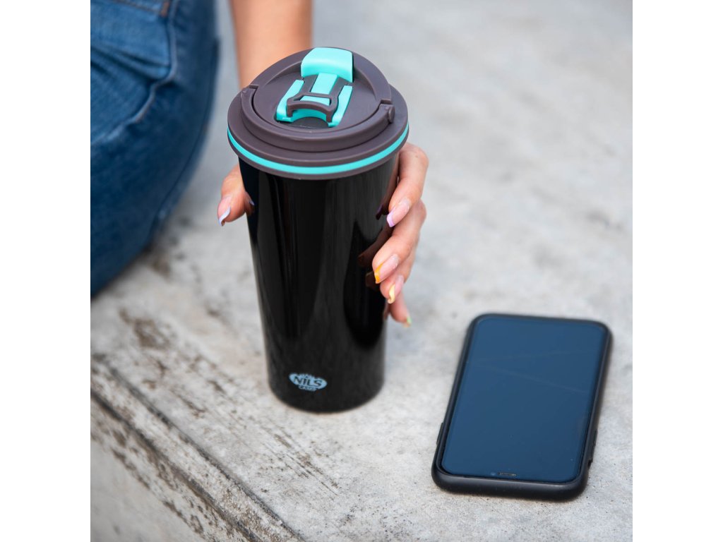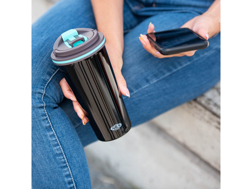 Termohrnček NILS Camp NCB18 má jednoduchú konštrukciu a originálny dizajn! Termohrnček je vyrobený z dvojstennej nehrdzavejúcej ocele, ktorá zaručuje, že vaše nápoje vydržia horúce 12 hodín a studené 24 hodín, takže je jedno, či si pripravíte rannú kávu na pitie cestou do práce, alebo si do hrnčeka nalejete obľúbenú limonádu a vezmete si ju so sebou na niekoľkohodinovú prechádzku do prírody, termohrnček udrží váš nápoj v správnej teplote. Model NCB18 má veľmi pohodlný systém otvárania. Stačí zatiahnuť za páčku a je to. Silikónové tvarovanie vo viečku zabraňuje rozlievaniu nápoja, keď je hrnček zatvorený. Ďalšou veľkou výhodou je, že dno hrnčeka má protišmykovú gumu, ktorá zvyšuje bezpečnosť pred rozliatím horúcej kávy alebo čaju, keď je hrnček otvorený!