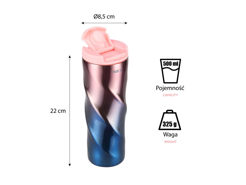 Termohrnček NILS Camp NCB22 s objemom 0,5 l sa vyznačuje jednoduchou konštrukciou a originálnym dizajnom!