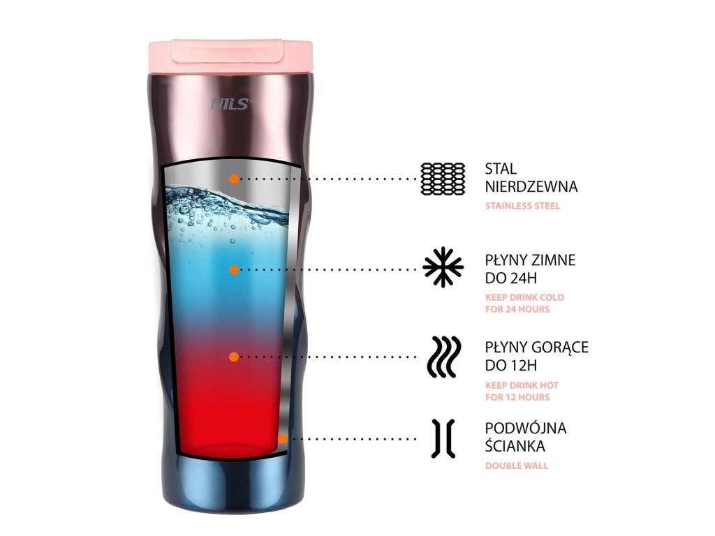 Termohrnček je vyrobený z dvojstennej nehrdzavejúcej ocele, ktorá zaručuje, že vaše nápoje vydržia horúce 12 hodín a studené 24 hodín, takže nezáleží na tom, či si pripravíte rannú kávu, ktorú vypijete cestou do práce, alebo si do hrnčeka nalejete obľúbenú limonádu a vezmete si ju so sebou na niekoľkohodinovú prechádzku do prírody, termohrnček udrží váš nápoj v správnej teplote.