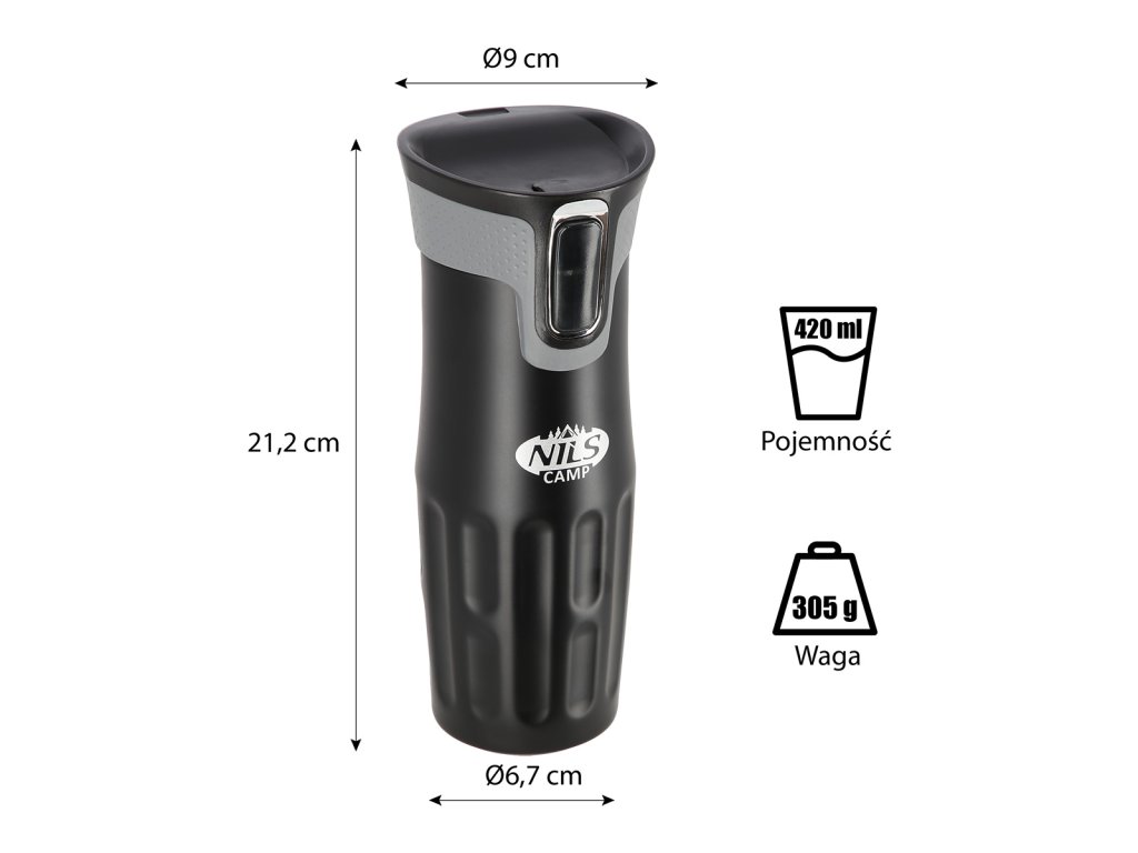 Termohrnček NILS Camp NCC06 má jednoduchú konštrukciu a originálny dizajn! Termohrnček je vyrobený z dvojstennej nehrdzavejúcej ocele, ktorá zaručuje uchovanie horúcich nápojov po dobu 12 hodín a studených po dobu 24 hodín, takže nezáleží na tom, či si pripravíte rannú kávu na pitie cestou do práce alebo si do hrnčeka nalejete obľúbenú limonádu a vezmete si ju so sebou na niekoľkohodinovú prechádzku do prírody, termohrnček udrží váš nápoj v správnej teplote. NCC06 má veľmi pohodlný systém otvárania. Keď sa chcete napiť, jednoducho stlačte tlačidlo na prednej strane veka a otvor pre prietok sa otvorí. Po uvoľnení tlačidla sa pohár zatvorí. Ďalšou veľkou výhodou je, že dno hrnčeka má protišmykovú gumu, ktorá zvyšuje bezpečnosť pred rozliatím horúcej kávy alebo čaju, keď je hrnček otvorený!