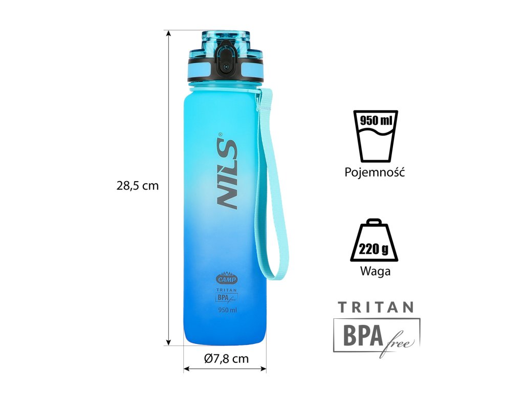 NILS Camp NCD04 je fľaša na vodu s objemom 950 ml vyrobená z tritanu.