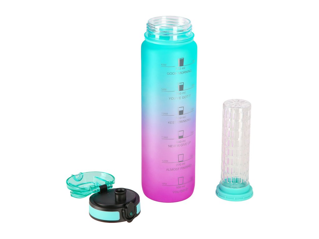 NCD04 bola navrhnutá tak, aby nás sprevádzala počas celého dňa. Vďaka stupnici na boku fľaše môžeme sledovať, ako sa nám darí dodržiavať pitný režim. Fľaša má výklopný uzáver, ktorý dobre tesní, takže voda zostáva vo fľaši. Ak chceme fľašu otvoriť, musíme uvoľniť poistku a stlačiť tlačidlo, potom sa uzáver uvoľní. Súčasťou fľaše je odnímateľné, infúzne sitko, do ktorého môžete vložiť napríklad ovocie alebo lístky mäty a kúsky citróna. Praktické pútko na zápästie a pútko, ktoré je súčasťou uzáveru, rozširujú možnosti prenášania fľaše.