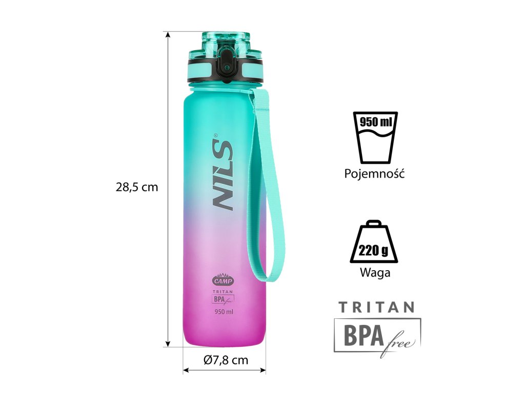 NILS Camp NCD04 je fľaša na vodu s objemom 950 ml vyrobená z tritanu.