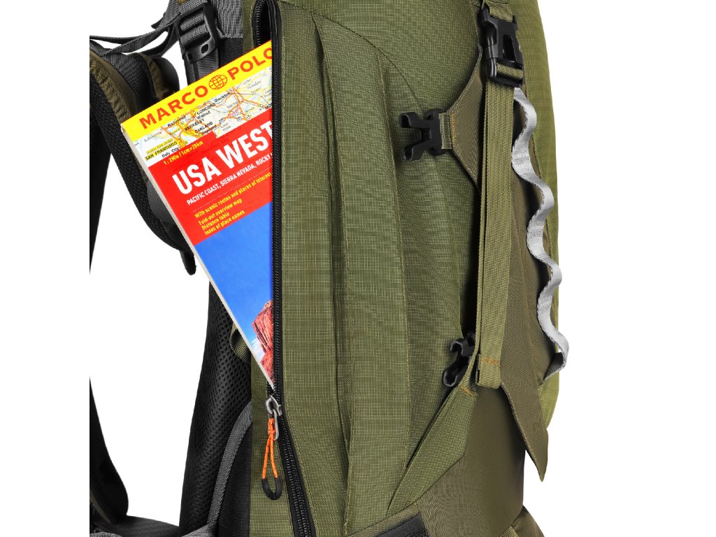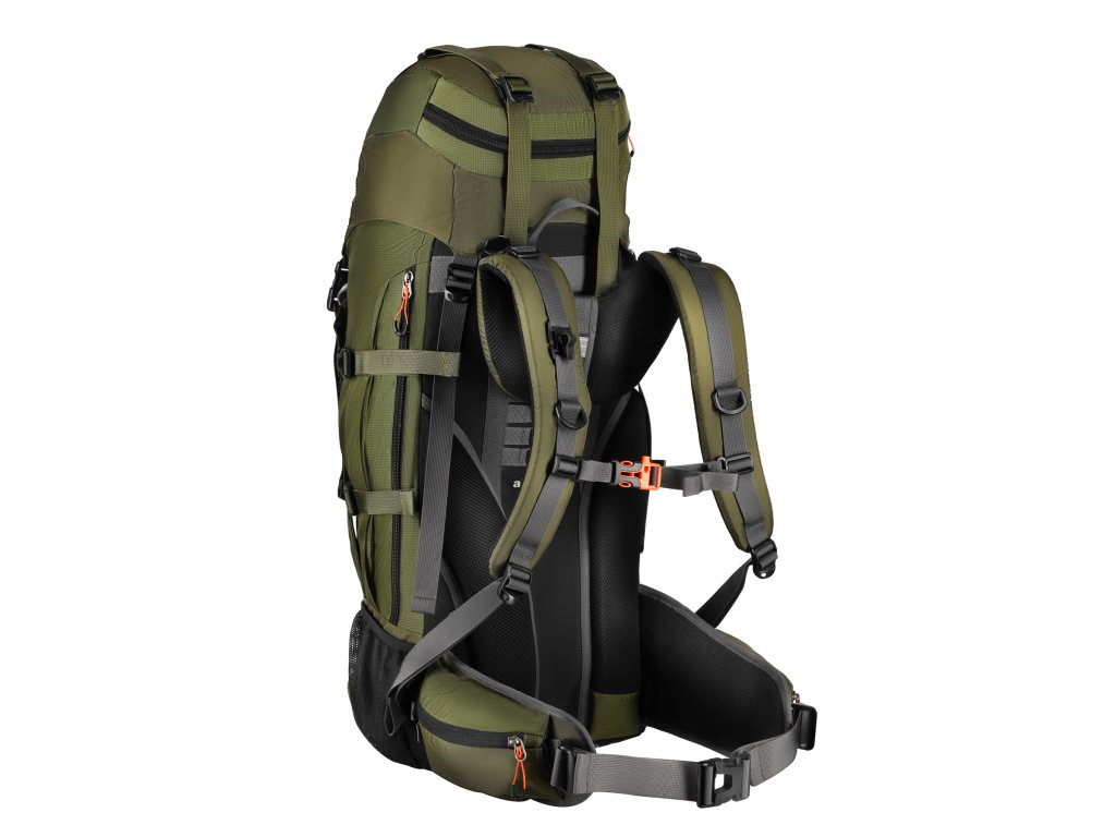 Montážní poutka a kompresní popruhy na víku i přední části batohu umožňují připevnění karimatky, spacáku či dalšího vybavení. Nechybí ani úchyty na trekingové hole, které zvyšují praktičnost při pohybu v náročném terénu.
