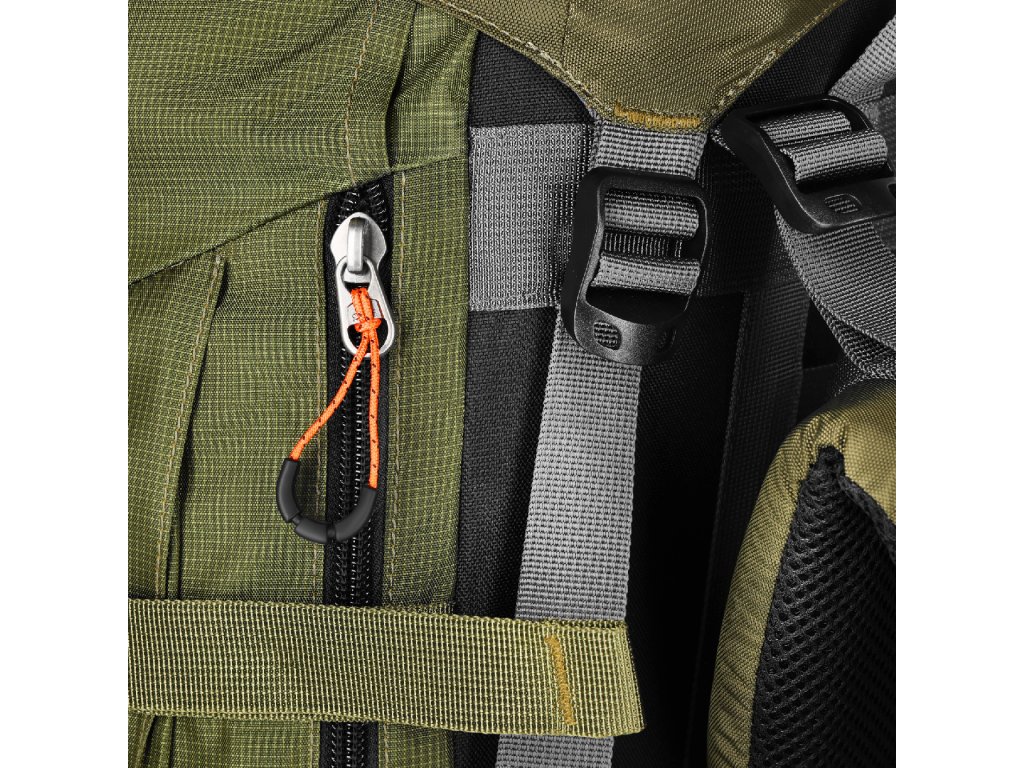 Batoh je navržen tak, aby nabídl maximálně pohodlný přístup k výbavě z několika směrů. Hlavní komora je přístupná shora pomocí stahování na šňůrku pod víkem, což je ideální pro klasické balení větších kusů vybavení.