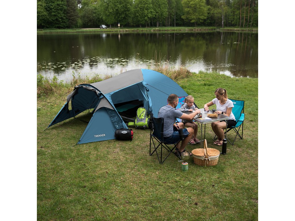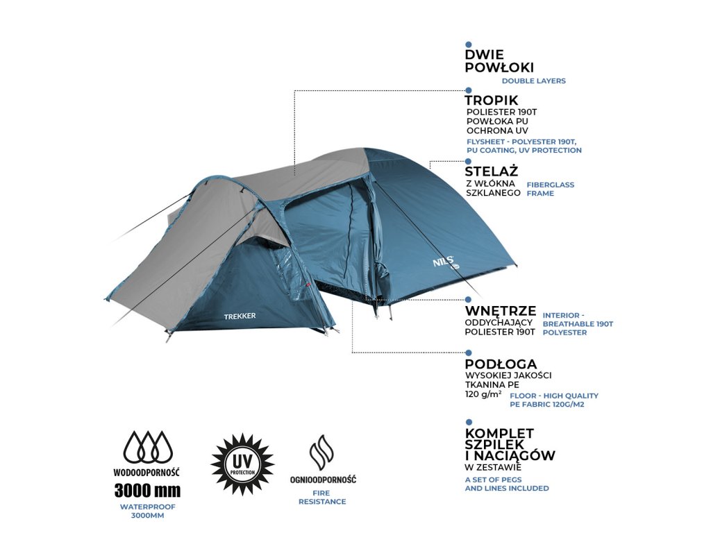 NILS Camp NC6012 Trekker je turistický stan pre 4 osoby, ktorý oceníte pri potulkách prírodou, ako partnera pri spaní pod holým nebom alebo počas krátkeho pobytu v kempe. Stan Trekker je dvojplášťový a pozostáva z predsiene a spálne.