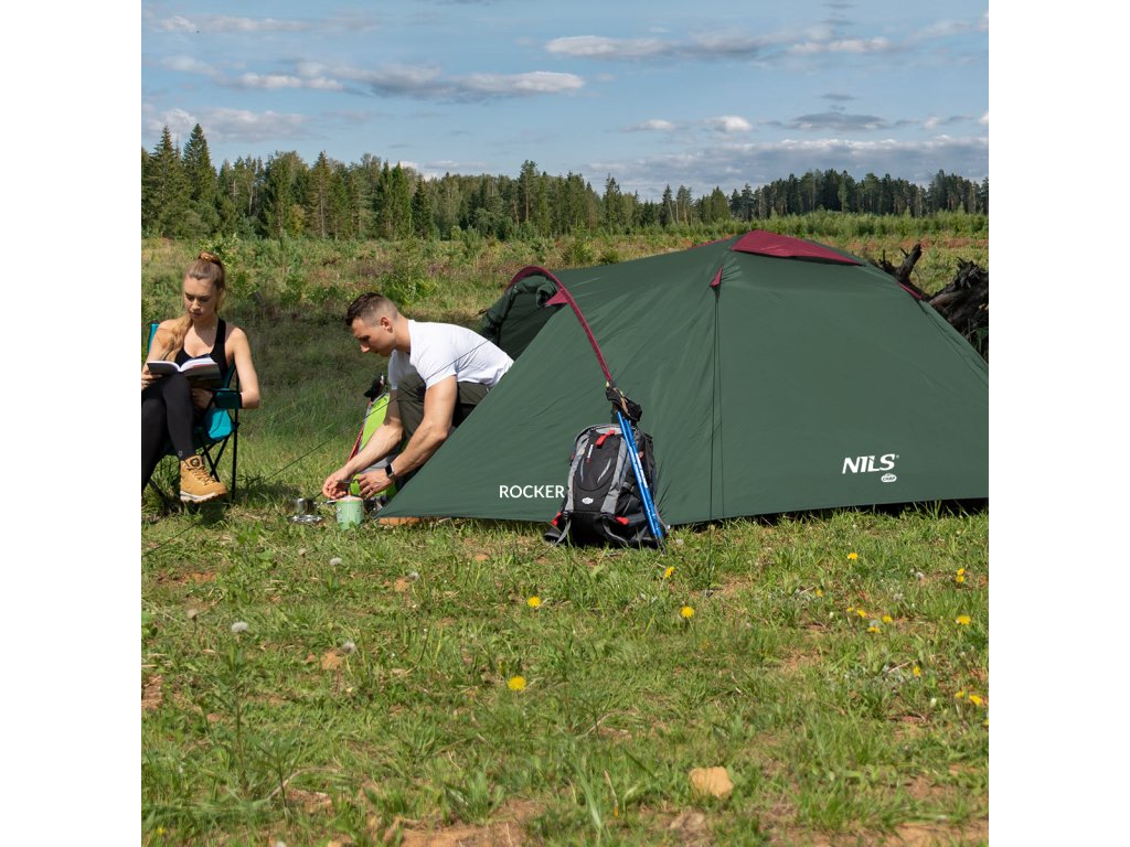 NILS Camp NC6013 Rocker je stan pre 3 osoby, ktorý oceníte počas teplých letných nocí na záhrade alebo pri pobyte v kempe. Stan Rocker je dvojplášťový a pozostáva z priestrannej predsiene a jednej spálne.