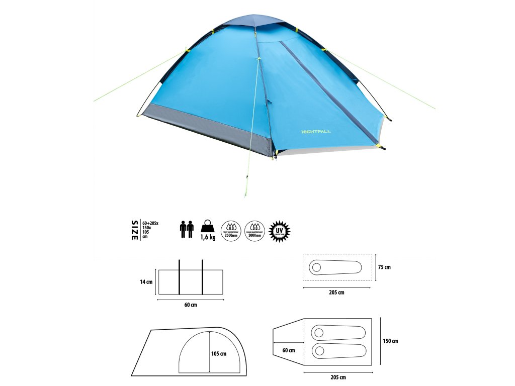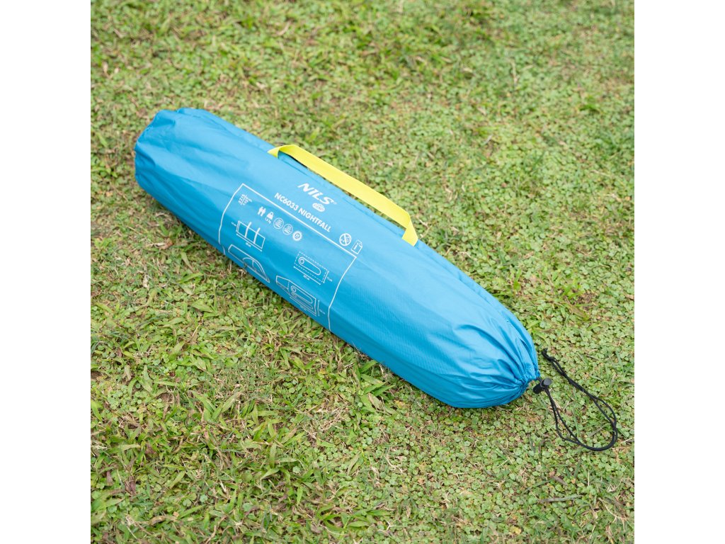 NILS Camp NC6033 Nightfall je 2 osobový, turistický stan, ktorý oceníte pri potulkách prírodou, spaní pod "širákom" alebo pri krátkom pobyte v kempe. Stan Nightfall je jenoplášťový a skladá sa z malej predsiene a spálne.