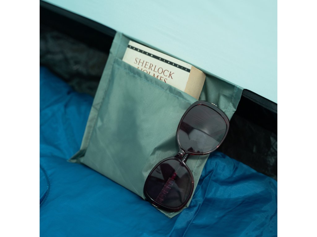 Vchod do spálne je opatrený tkaninou aj moskytiérou pre cirkuláciu vzduchu. V strede "stropu" sa nachádza háčik, na ktorý je možné zavesiť napríklad svietidlo a ventilačné prieduchy s moskytiérou. Na strane sa nachádza vrecko na odloženie telefónu, peňaženky a pod.. Podlážka spálne je polyetylénová s gramážou 120g/m2 a je vodeodolná do 3000 mm H2O.