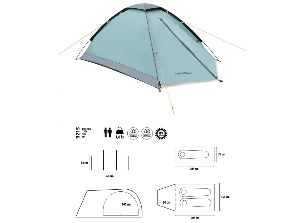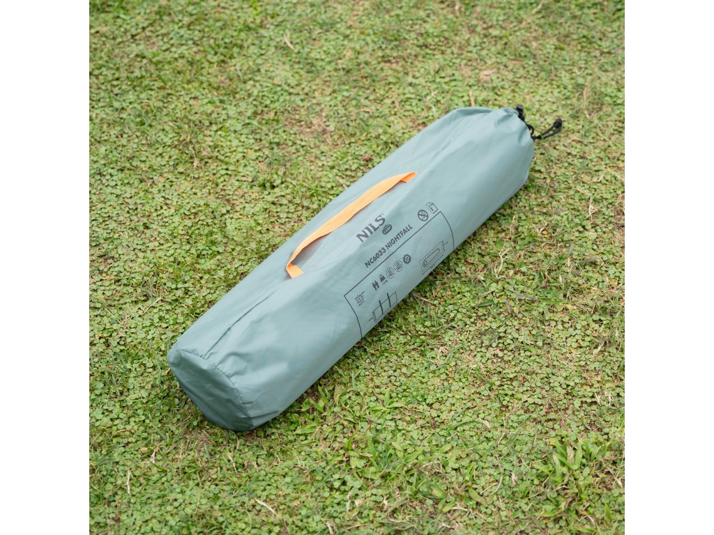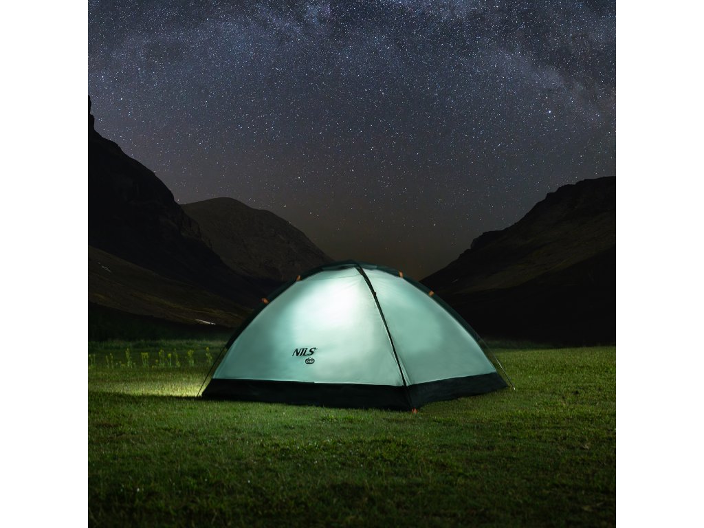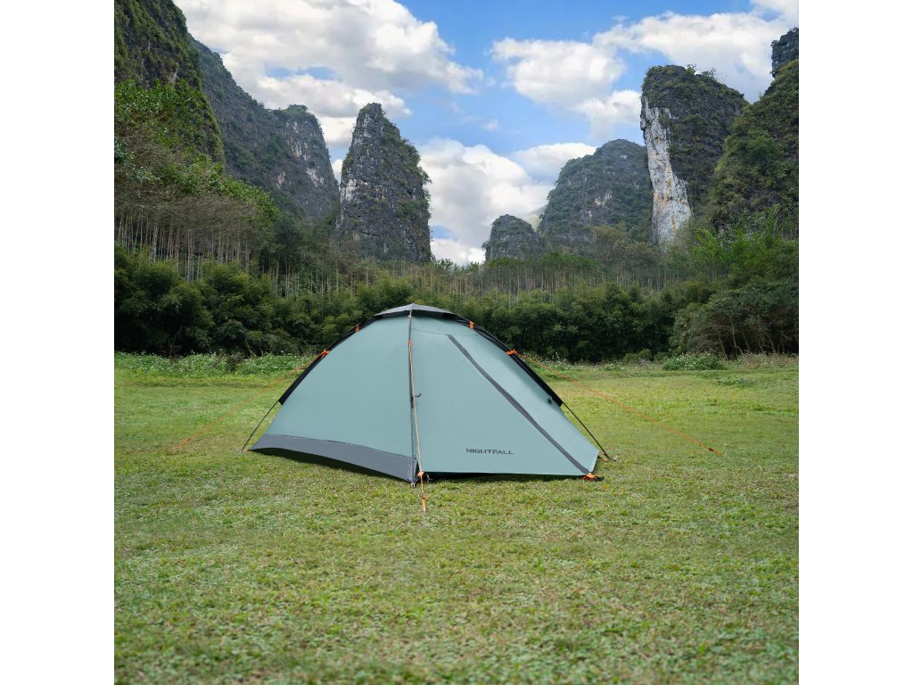 NILS Camp NC6033 Nightfall je 2 osobový, turistický stan, ktorý oceníte pri potulkách prírodou, spaní pod "širákom" alebo pri krátkom pobyte v kempe. Stan Nightfall je jenoplášťový a skladá sa z malej predsiene a spálne.