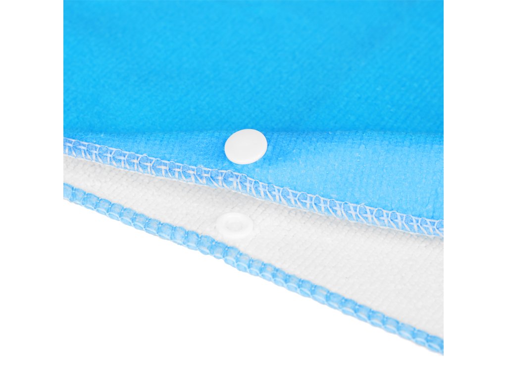 Materiál osušky je vysoko kvalitné mikrovlákno, ktoré je zmesou polyesteru a polyamidu. Tkanina sa vyznačuje výnimočnou mäkkosťou a jemnosťou pri kontakte s detskou pokožkou, zároveň dokonale absorbuje vodu a rýchlo schne. Vďaka tomu je pončo nielen pohodlné, ale aj praktické - ideálne na každodenné použitie i cestovanie.