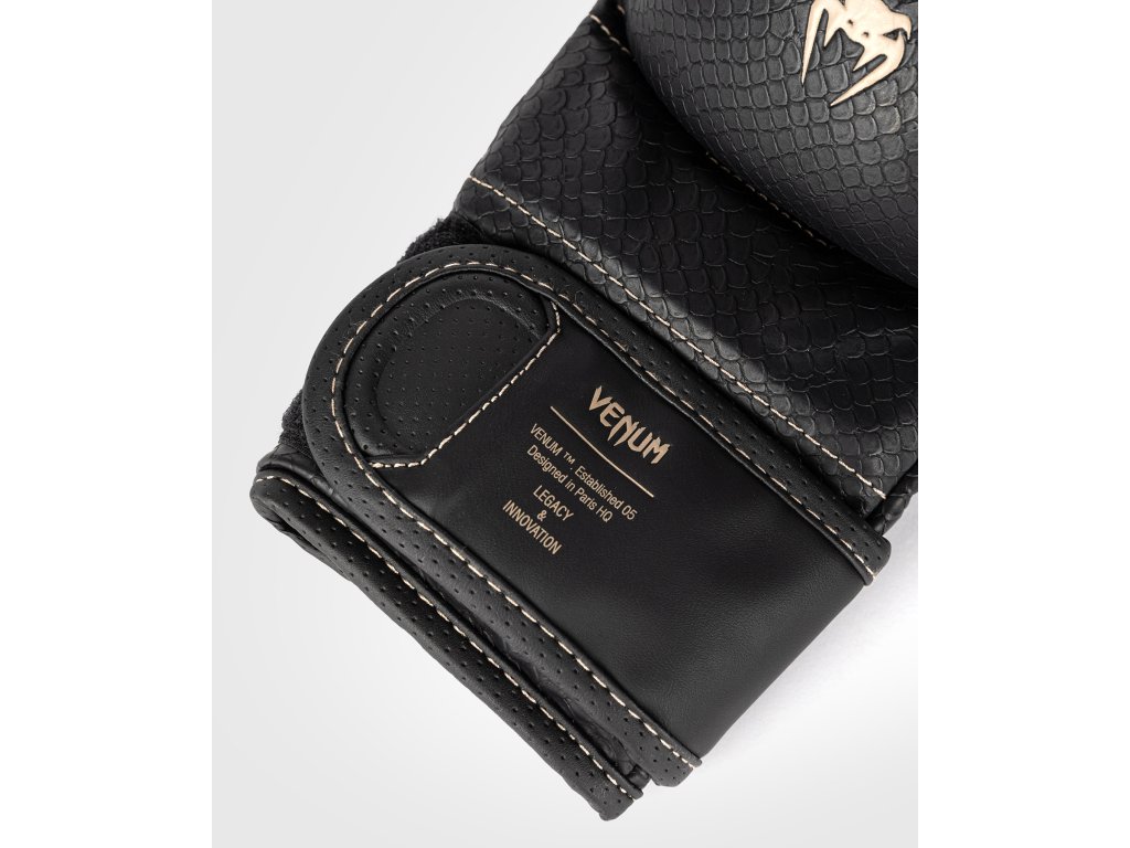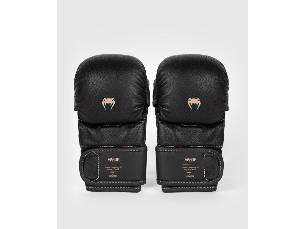 Béžové prešívanie kopíruje anatomický tvar rukavice a vytvára jemný kontrast. Textúrovaný vzor v podobe šupín po celom povrchu je pripomienkou útočiť rýchlo a tvrdo – v štýle Venum.