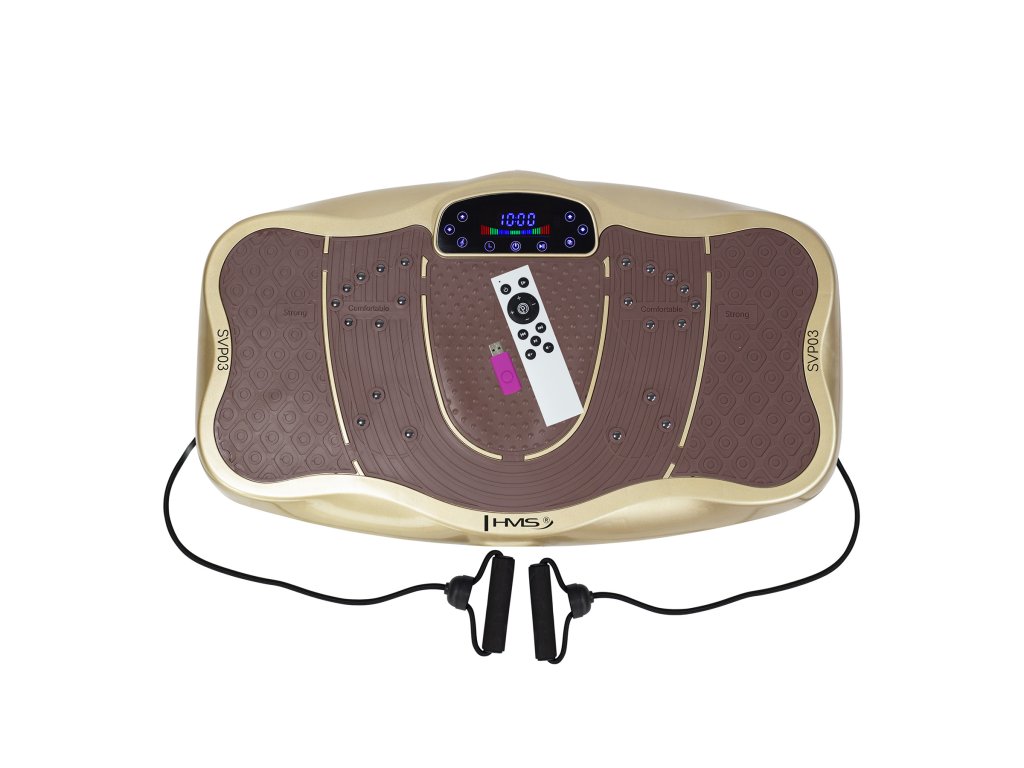 Vibračná plošina je zariadenie vhodné pre každého bez ohľadu na fyzickú kondíciu. SVP03 má 4 tréningové režimy a manuálny režim, ktorý vám umožní prispôsobiť tréning vašim schopnostiam a potrebám. Zariadenie sa veľmi ľahko používa. Diaľkové ovládanie dodávané s produktom umožňuje ľahké ovládanie a zmenu programov. Platforma má navyše USB vstup a vstavané reproduktory. To nám dáva možnosť počúvať našu obľúbenú hudbu pri tréningu.