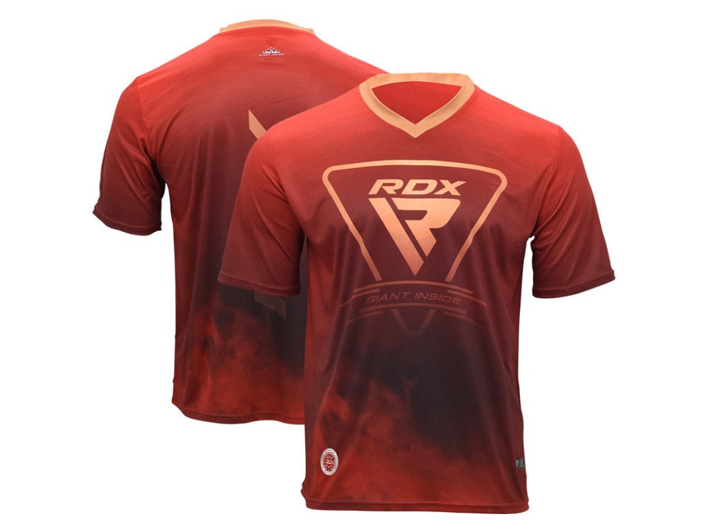 This RDX and WAKO co-branded T-shirt is made using 100% high-quality performance polyester with the RDX Sports logo insignia with Giant Inside tagline printed on it. Short-sleeve and V-necked, these shirts promise a sporty fit to compliment your form.