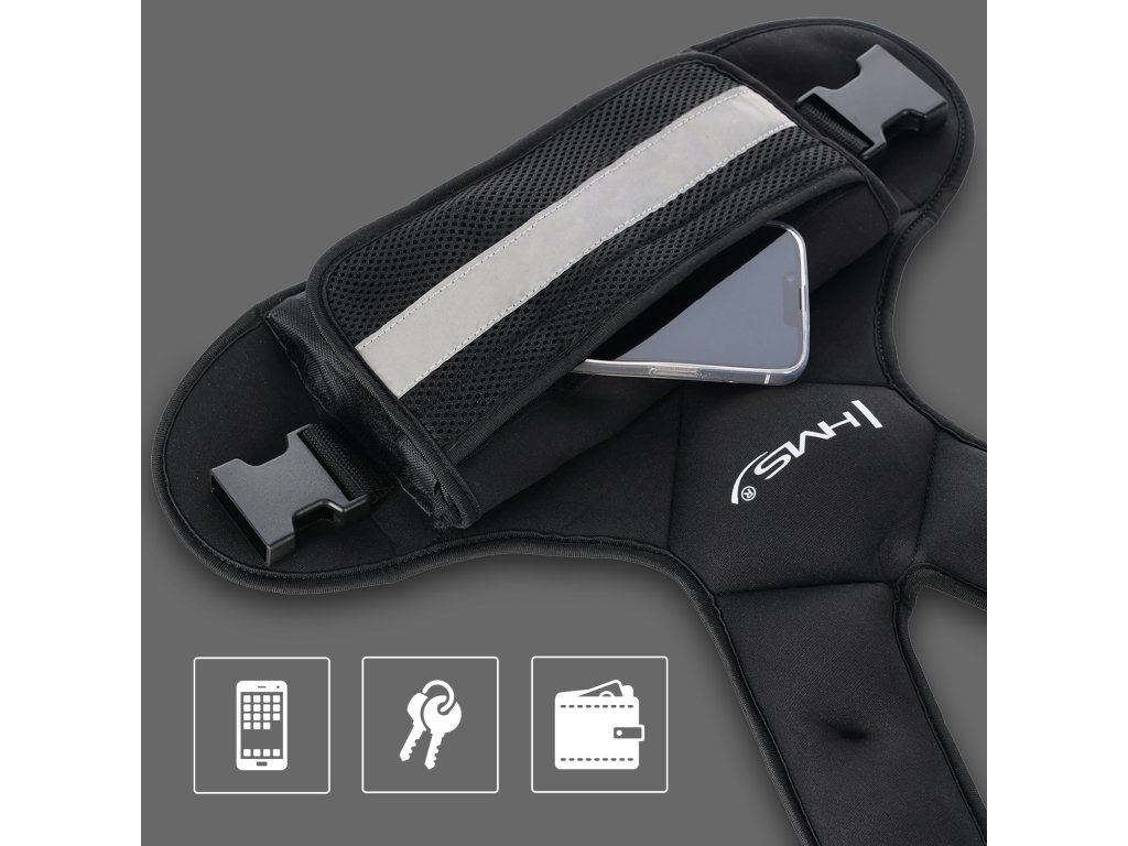 Vybavenie bolo navrhnuté s ohľadom na pohodlie užívateľa. Regulovateľné popruhy umožňujú dokonalé prispôsobenie akejkoľvek postave, a špeciálny neoprénový materiál je mäkký, odolný proti potu a zabraňuje skĺzavaniu vesty aj pri intenzívnych pohyboch. Elastické sieťované vrecko poskytuje priestor na uloženie telefónu, kľúčov alebo peňaženky, vďaka čomu sa tréning stáva ešte praktickejším.