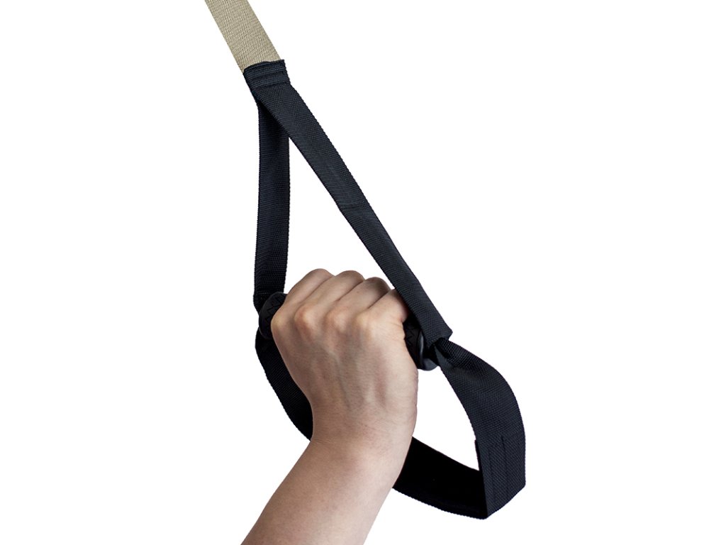 Súprava obsahuje popruhy s rukoväťami a kovovou karabínou, predlžovací popruh, zarážku na dvere a úložnú tašku. Rukoväte sú pogumované, aby sa vám pri cvičení nešmýkali ruky.